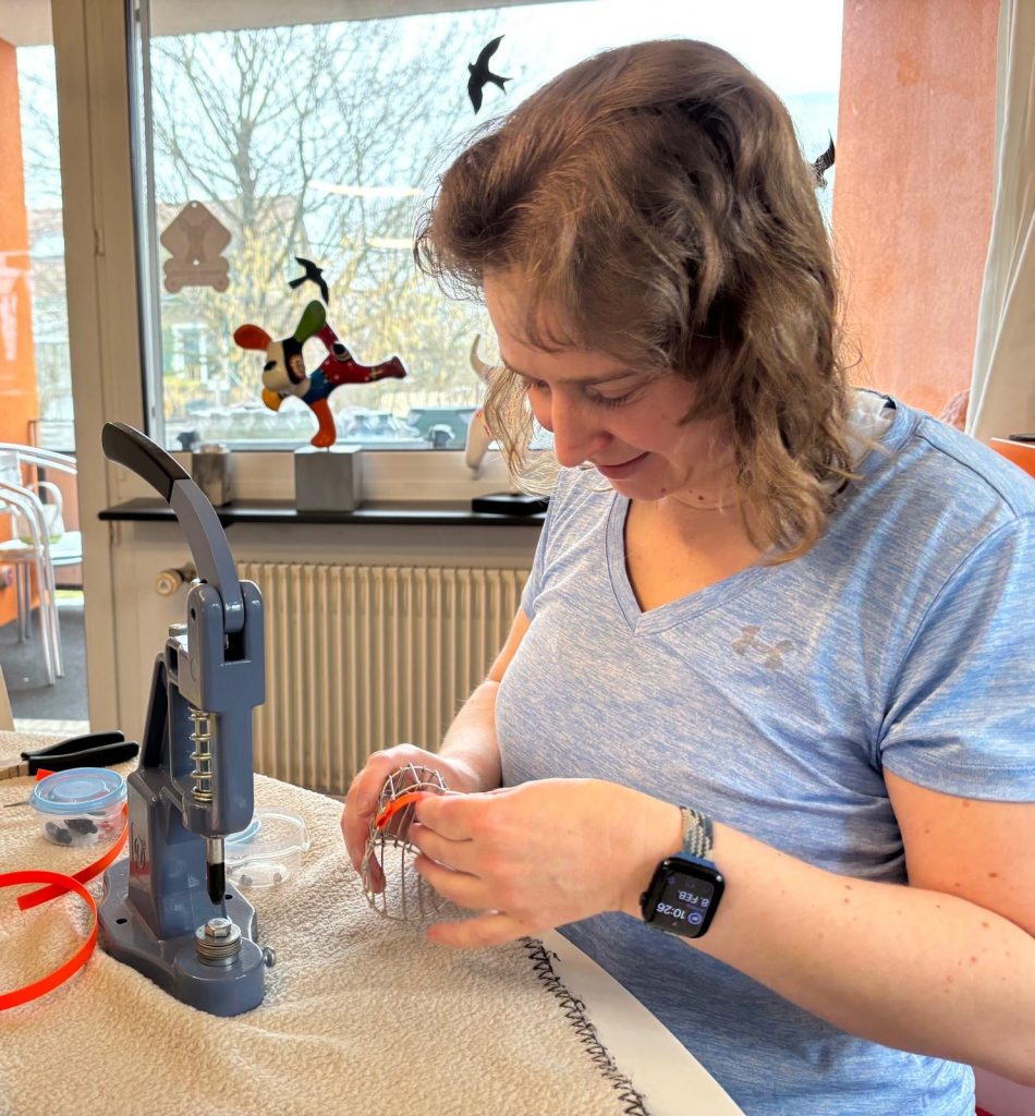 Vor Ort werden die verschiedenen Modelle anprobiert und das passende Modell ausgesucht. Dieses wird dann noch angepasst soweit nötig. Das heisst der Maulkorb kann enger oder weiter gebogen und Riemen ausgetauscht oder hinzugefügt werden. Falls gewünscht, kann ich danach den Maulkorb nochmals mitnehmen und das Drahtgestell färben mittels Pulverbeschichtung.
